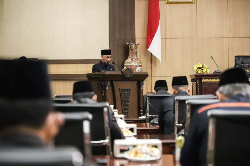 SEKAYU – Pj Bupati Musi Banyuasin (Muba) H Apriyadi hadiri Rapat Paripurna Masa Persidangan I Rapat ke-24, dalam rangka Penyampaian jawaban / tanggapan Pj Bupati Muba terhadap Pemandangan Umum Fraksi – fraksi DPRD Kabupaten Muba, Selasa (20/9/2022).