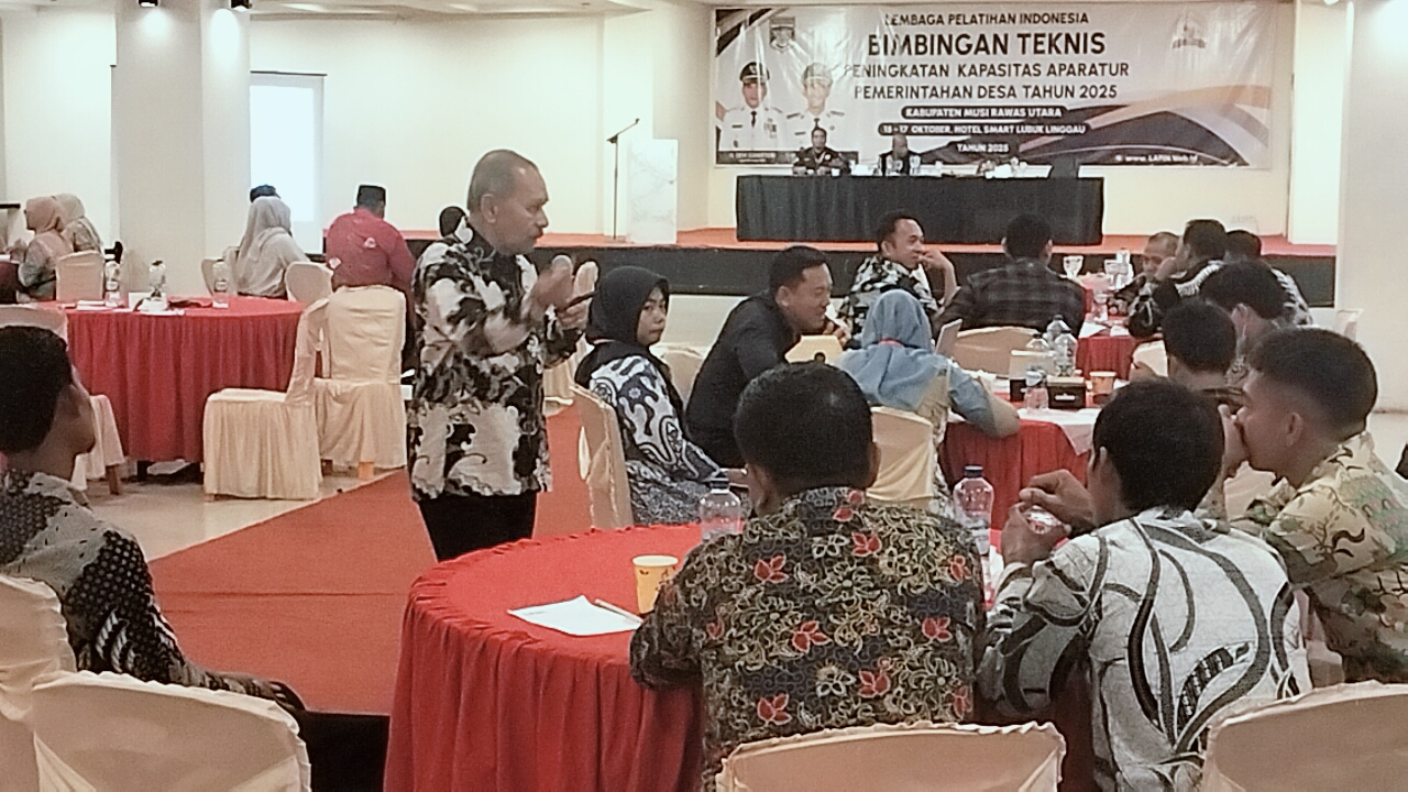 Muratara, Gerbangsumsel.com,– Kegiatan Bimbingan Teknis (Bimtek) Peningkatan Kapasitas Aparatur Pemerintah Desa se-Kabupaten Musi Rawas Utara (Muratara) Tahun 2025 resmi dimulai, Kamis (16/10/2025). Kegiatan ini akan berlangsung selama tiga hari, mulai 15 hingga 17 Oktober 2025, dengan diikuti oleh 133 aparatur desa dari tujuh kecamatan di wilayah Muratara.